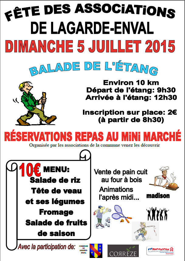 Comme chaque année, les associations de la commune vous invitent le dimanche 5 juillet 2015 à venir passer un agréable moment au bord de l’étang.